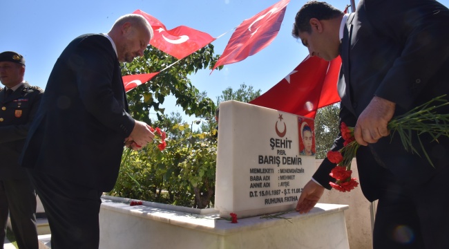 Törende, Kuran-ı Kerim tilaveti ve dualar okundu. Ardından şehit kabirlerine karanfiller