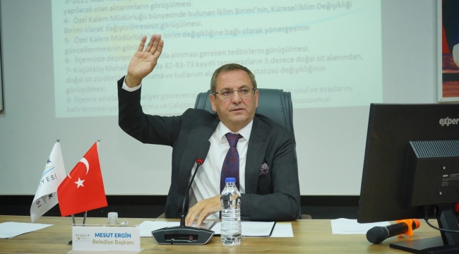 Küresel iklim değişikliğiyle ilgili mücadele için belediye bünyesinde birim oluşturulduğunu duyuran Başkan Ergin, “Çağımızın en önemli sorunlarından biri endüstriyel yaşamda tüketim toplumlarında üretim ve tüketim süreçlerinde oluşan çevre sorunları. Bu sorunlarla herkesin her kurumun mücadele etmesi gerekiyor. Ayvalık Belediyesi olarak biz de üzerimize düşen her şeyi yapmak gayreti içindeyiz. Meclis gündemimizde yer alan Küresel İklim Değişikliğiyle mücadele biriminin kurulması da bu hassasiyete bağlı olarak meclisin huzuruna getirdik. Tıpkı yakın zamanda belediye olarak yeşil enerji adıyla adlandırılan RES yapımına ilişkin getirdiğimiz ve bakanlık onayında olan projemiz gibi” diye ifaede etti.