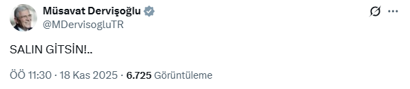 Bahçeli'nin açıklamasından kısa süre sonra X üzerinden yaptığı paylaşımla tepki gösteren İYİ Parti lideri Müsavat Dervişoğlu, SALIN GİTSİN!..." paylaşımında bulundu.