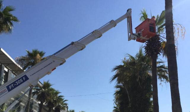 Marmaris Belediyesi Park ve Bahçeler Müdürlüğü’nün ilçenin sembolü haline gelen palmiye ağaçlarına yönelik bakım çalışması devam ediyor. Merkez sahil, içmeler sahil ve Armutalan’da ara sokaklarda çalışmayı bitiren ekipler Atatürk Caddesi’nin Sabancı Lisesi – Ketenci Otel arasındaki kısmı ve Hasan Işık Caddesi üzerindeki palmiyeleri budamaya başladı. 3 gün boyunca gece 02.00 – 10.00 saatleri arasında yapılan çalışmada Emniyet Müdürlüğü trafik ve belediye zabıta ekipleri de alanda araç kontrolü için görev yapıyor.