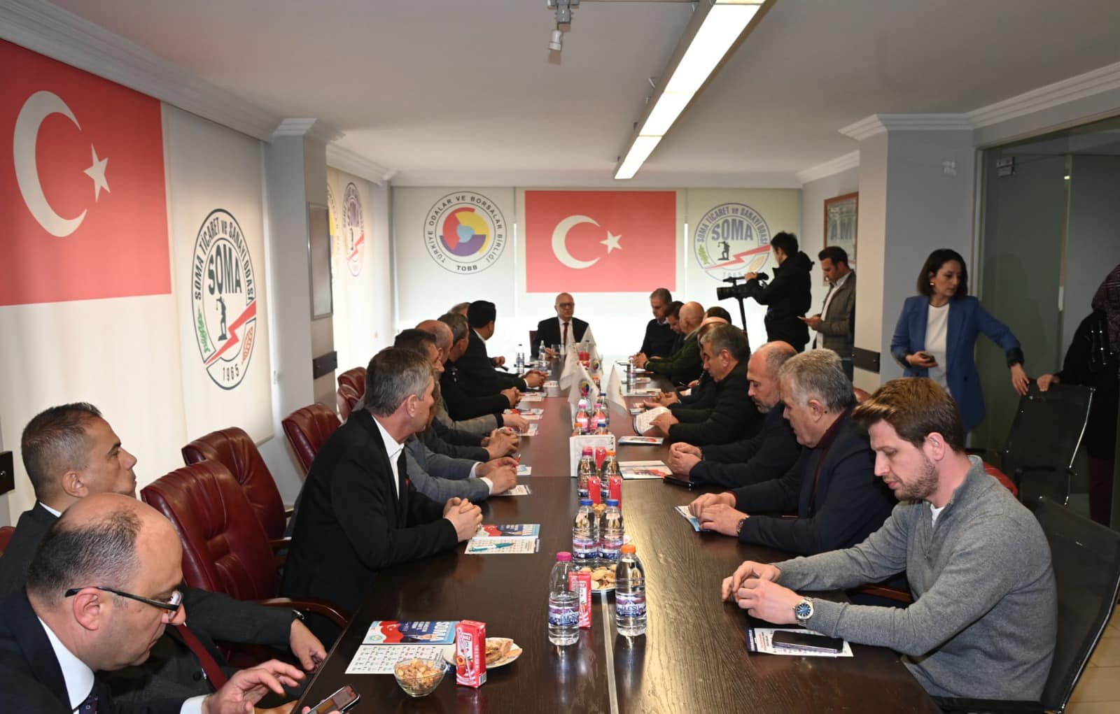 Ziyaretten duyduğu memnuniyeti dile getiren Soma TSO Yönetim Kurulu Başkanı Cem Doğan da, 31 Mart tarihinde yapılacak olan yerel seçimlerin hayırlı olmasını temenni ederek Başkan Ergün ve Türkmen'e başarılar diledi.