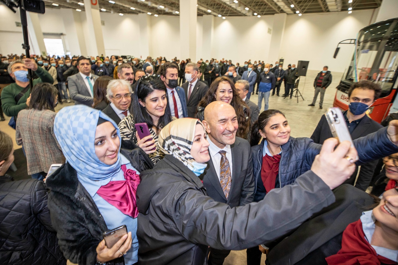 Fuar İzmir'de bulunan ESHOT Genel Müdürlüğü'nü ziyaret eden İzmir Büyükşehir Belediye Başkanı Tunç Soyer'i, ESHOT Genel Müdür Vekili Turgay Akkaya karşıladı. Burada personelin yeni yılını kutlayan Başkan Soyer, Türkiye'nin zor bir dönemden geçtiğini, İzmir'de de 3 yıldır her türlü felaketi yaşadıklarını ancak hepsinin altından el ele verdikleri için kalktıklarını söyledi. Belediye çatısı altında çalışanların işini düzgün yapma gayreti taşıdığını ifade eden Soyer, “O nedenle tek tek hepinize minnettarım. Hepinizle gurur duyuyorum, iftihar ediyorum. Sizlerle beraber çalışmaktan çok büyük mutluluk duyuyorum. Her biriniz için söyleyecek çok şeyim var. Ama şunu bilin ki; sizleri ailem gibi görüyorum. Çalışma koşullarınızı, huzurunuzu iyileştirmek için elimden ne geliyorsa yapmaya devam edeceğim” şeklinde konuştu.