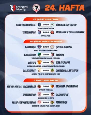 Trendyol Süper Lig Mehmet Ali Yılmaz Sezonu 24-25. hafta müsabakalarına ilişkin program açıklanmıştır. Programlar, birbirini ilgilendiren müsabakaların aynı gün ve saatlerde oynanacağı Ziraat Türkiye Kupası 4. Grup müsabakaları ve Avrupa Kupalarında mücadele eden kulüplerimizin tur atlayacakları hesaba katılarak planlanmıştır.