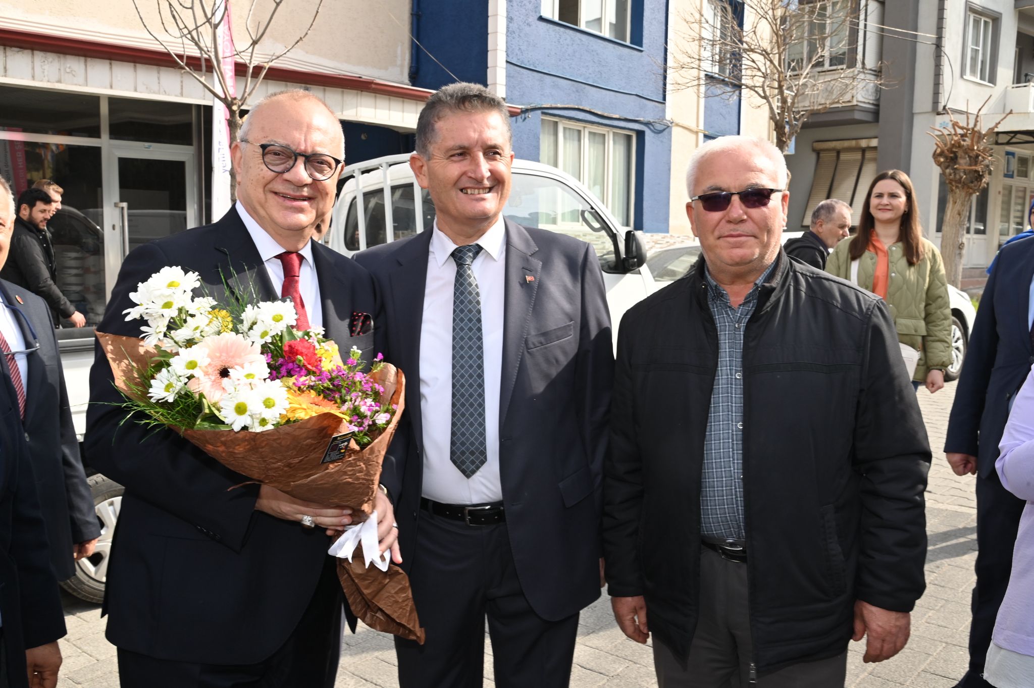 Esnaf ziyareti sırasında çiçeklerle karşılanan Başkan Ergün ve Türkmen'i toplu taşıma esnafı da sevgiyle karşıladı. Başkan Ergün’e çiçek takdim eden 176 No’lu Soma Şehir içi Denetimli Özel Halk Otobüsleri Başkanı Emin Kurban ve Yönetimi çalışmalarında başarılar diledi.