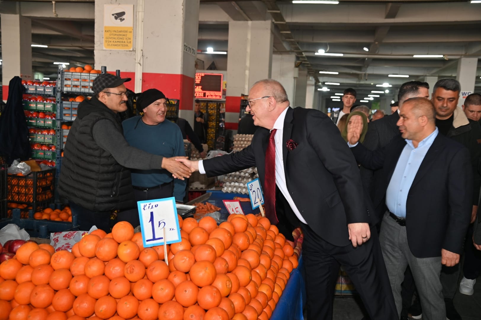 İlçe merkezinde yapılan esnaf ziyaretinin ardından Başkan Ergün ve Türkmen, Pazarcı esnafını ziyaret etti. Pazarcı esnafı tarafından ilgiyle karşılanan Başkan Ergün, hayırlı işler diledi.