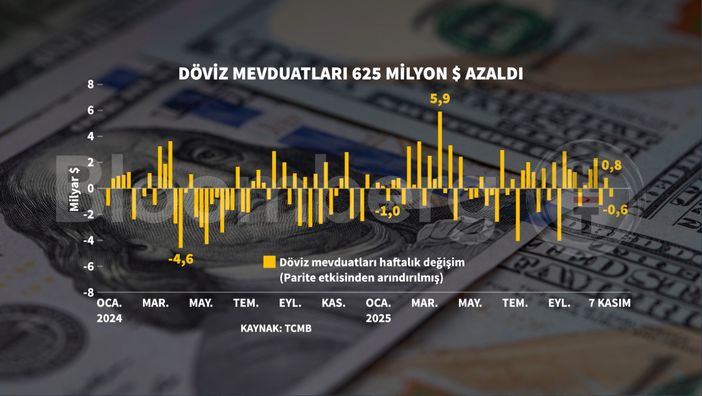 Verilere göre, bankalarda yurt içi yerleşiklerin toplam döviz mevduatları 7 Kasım 2025 tarihinde sona eren bir haftalık sürenin sonunda 209 milyar 815 milyon dolar oldu. Döviz mevduatları bir önceki haftaki 211 milyar 107 milyon dolar seviyesine göre 1 milyar 292 milyon dolarlık azaldı.