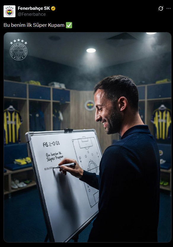 Turkcell Süper Kupa finalinde Galatasaray'ı 2-0 yenen Fenerbahçe şampiyon oldu. Sarı lacivertlilerin sosyal medyadaki galibiyet paylaşımları Okan Buruk'un açıklamaları ile başladı.