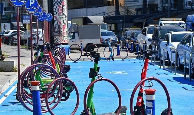 İzmir Büyükşehir Belediyesi tüm dünyada sürdürülebilir ve çevreci bir ulaşım aracı olarak hızla yaygınlaşan elektrikli skuter (e-skuterler) için park alanları oluşturdu.