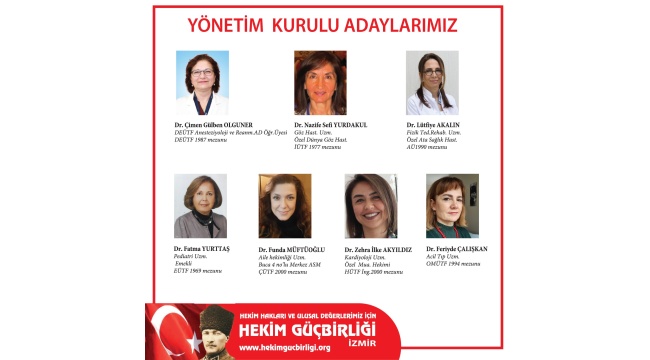 İzmir Tabip Odası seçime gidiyor. Mevcut yönetime bayrak açan Hekim Güçbirliği, Dokuz Eylül Üniversitesi Tıp Fakültesi Anesteziyoloji ve Reanimasyon Anabilim Dalı'ndan Prof. Dr. Çimen Gülben Olguner'i aday gösterdi. Olguner'in tüm yönetim kurulu adayları kadın doktorlardan oluşuyor.