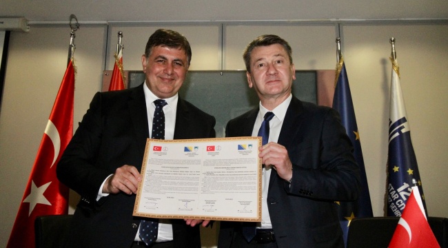 sıcak şekile karşılandık ve aramızdaki var olan dostluğu ve bağı da çok kuvvetli şekilde hissettik. 25 Kasım’da oradaydık, Bosna Hersek’in ulusal günüydü ve değerli Başkanımız İbrahim Hadzibajric kent içerisinde yapılan yürüyüşte beni de yanına davet etti, koluma girdi ve beraber o yürüyüşü gerçekleştirdik. Hayatım boyunca unutmayacağım çok özel bir anı oldu benim için. Yanımızda Kemal Baysak da yürüyor gibiydi, iki ülke arasındaki o dostluğa sahip çıkan tüm insanlar yürüyor gibiydi. Sayın İbrahim Hadzibajric çok sevilen bir belediye başkanı. Ben bunu bizzat gördüm. Daha uzun yıllar Bosna Hersek’e önemli hizmetler vereceğine inanıyorum. Yaptığı başarılı çalışmalar için kendisini kutluyorum. Sosyal, kültürel ve teknik iş birliklerimizin gelişmesini yürekten diliyorum. Bosna Hersek halkını çok seviyoruz. Kalplerimizde çok özel bir yerleri var. Bosna’dan gelecek gençleri burada ağırlamaktan, onlara ülkemizi tanıtmaktan büyük mutluluk duyarız. Aynı şekilde bizim gençlerimizin oraya gitmesi de bizi çok mutlu edecektir. İş birlikleri için kendilerine tekrar teşekkür ediyor, protokolümüzün hayırlı olmasını diliyorum.”Konuşmaların ardından Başkan Tugay ve Başkan Hadzibajric, Kardeş Şehir Protokolü’ne imza attı. Heyet, törenden sonra da Zübeyde Hanım Anıt Mezarı’nı ziyaret etti, Karşıyaka Belediyesi Evrensel Çocuk Merkezi’ndeki Planetaryum’da incelemelerde bulundu.