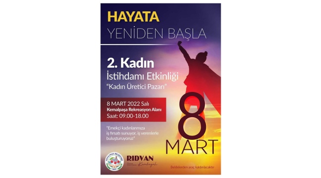 Kemalpaşa Rekreasyon alanında bu sene ikincisi düzenlenecek etkinlikte, çeşitli firmalardan iş insanları ile kadınlar bir araya gelerek kadınlara istihdam sağlanacak. Etkinliğe tüm kadınları davet eden Kemalpaşa Belediye Başkanı Rıdvan Karakayalı açıklamasında, “Emek hareketlerinden doğarak, Kadınlar Günü ile özdeşleşen 8 Mart gününü ‘Dünya Emekçi Kadınlar Günü’ olarak kutlamaktayız. Özellikle son yıllarda kadınlarımızın maruz kaldığı şiddet ve baskı en temel insani haklarından olan yaşam hakkını tehdit etmektedir. Bu konuyu, bütün Dünya ülkelerinin üzerine önemle eğilmesi ve en kısa sürede çözmesi gereken bir insanlık problemi olarak görüyorum.”