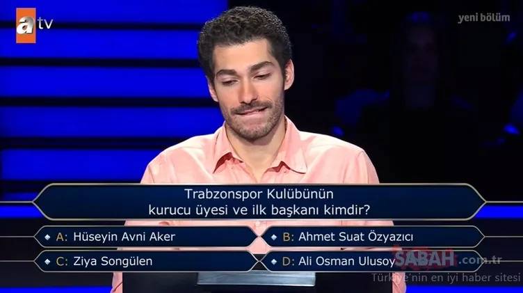 Yarışmacının karşısına 300 bin TL değerindeki 10'uncu soruda, "Trabzonspor Kulübü'nün kurucu üyesi ve ilk başkanı kimdir?' sorusu çıktı.