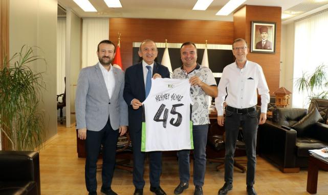 Manisa Büyükşehir Belediyespor Kulübü Başkanı Bora Çaylan, Manisa Ticaret ve Sanayi Odası Başkanı Mehmet Yılmaz’ı ziyaret ederek, yeşil-beyazlı takımın formasını hediye etti. Çaylan, Yılmaz’ı 29 Eylül Cuma günü saat 19.00’da oynanacak maça davet etti.