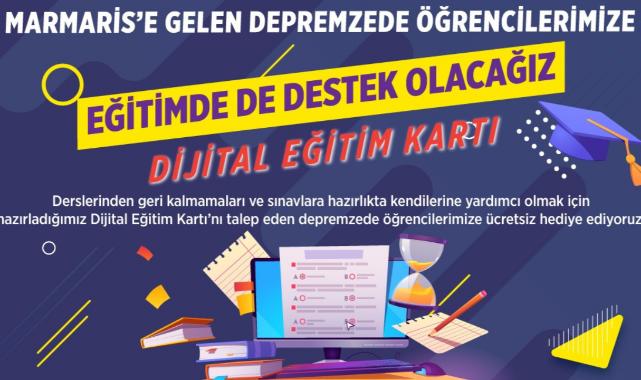 Marmaris Belediyesi deprem nedeniyle ilçeye gelen misafir öğrencilerin eğitimine de katkı sağlayacak. İsteyen öğrencilere binlerce online içeriğe sahip dijital eğitim kartı hediye edilecek.
