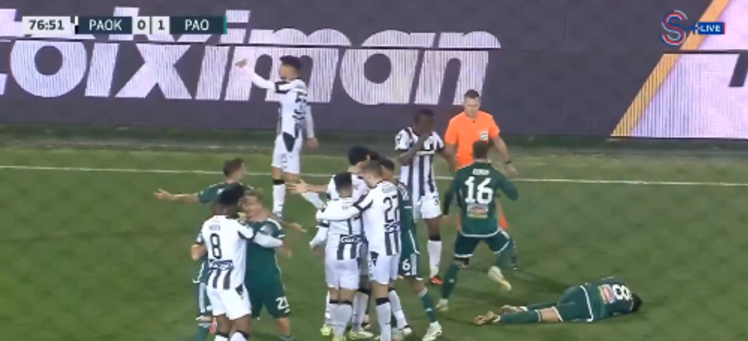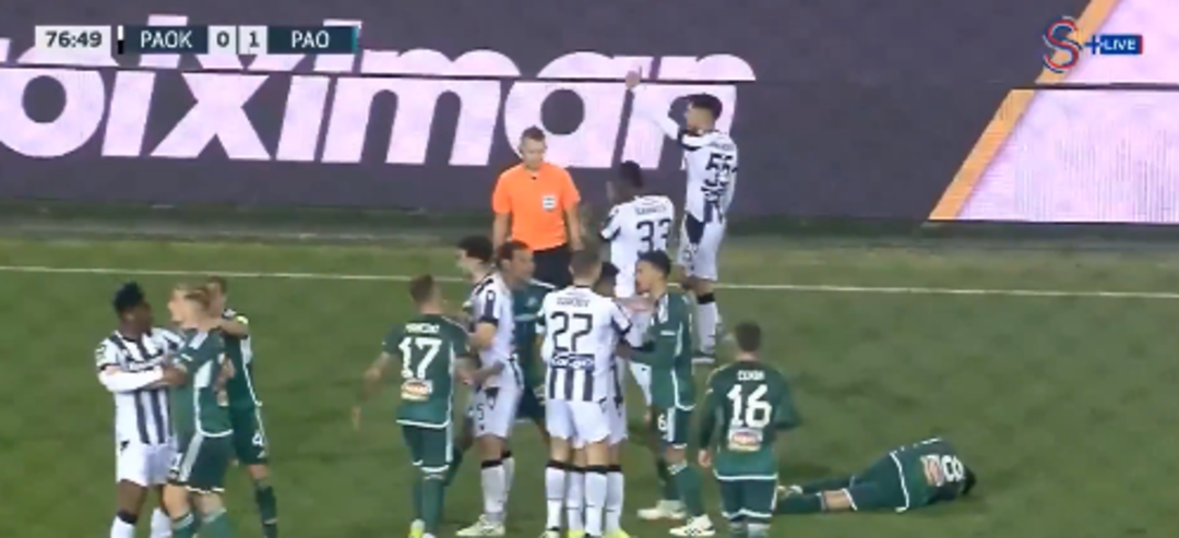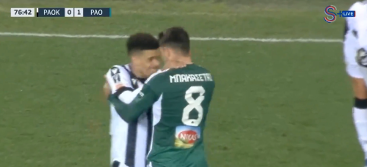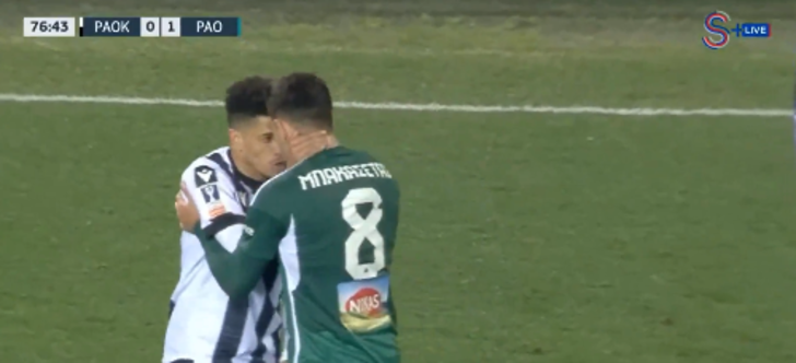 Mücadelenin son anlarına doğru yeni transfer Anastasios Bakasetas çılgına döndü. PAOK forması giyen Taison, Bakasetas'ın gırtlağına yapışarak defalarca tokat attı. Bu darbelerin ardından yerde kalan Bakasetas, uzun süre yerden kalkamadı.
