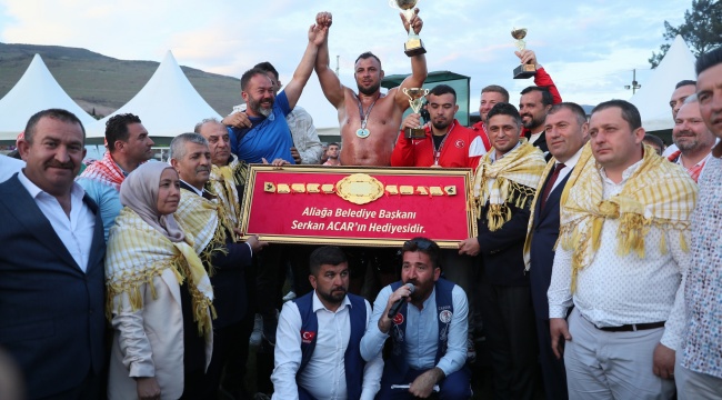 birincisi oldu. Helvacı’nın başpehlivanı Osman Aynur, birincilik kupasını ve altın kemer ödülünü Aliağa Belediye Başkanı Serkan Acar’ın elinden aldı.
