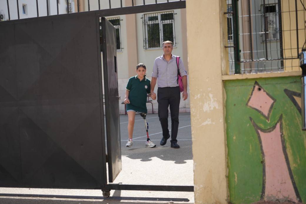 Yeni protez bacağı için alınan kalıp işleminin ardından bir hafta içerisinde protezine kavuşan Özge, okula başladı. yaklaşık 10 yıl boyunca kullanabileceği pistonlu bir protez ile okul yoluna heyecanla yürüyen baba Ali İhsan Yıldırım şöyle konuştu: "Mutluyuz, sonunda Özge’nin pistonla rahat yürüyebileceği bir proteze kavuştuk. Özge’nin eğitim hayatı başlayacak, Özge’yi de topluma kazandıracağız. Hayatı öğrenecek. En büyük hayalim, Özge’nin güzel bir yere gelip iyi bir meslek sahibi olması. Severek isteyerek yaptığı bir mesleği yapmasını istiyorum. İhlas Haber Ajansı’nın sesimizi duyurmasıyla beraber konuyu herkes duydu, Allah razı olsun. Özge’nin protezini Antalya’da 220 bin TL gibi bir ücretle yaptırdık. Şimdi bunun diz alıştırmalarına başladık. Dizini kullanmayı öğretmeye çalışıyoruz, çünkü dizinden çok korkuyor. Önceden diğer dizinin üzerine düştüğü için dizine güvenmiyor, amacımız pistonla dizine güvenmesini sağlamak, pistonla yürütmek ve koşturmak. Şimdi okul mücadelemiz var, Özge orta 1’e gidiyor, sının 5’inci katta, bu ayakla yürüyemez, Müdür beye ilettik. Biz de engelliler sınıfına geçmesi için dilekçe verdik, zemin kattaymış. Engelliler sınıfına geçmesini bekliyoruz. Sonra 11 yıldır süren hukuki mücadelemizi devam ettireceğiz."
