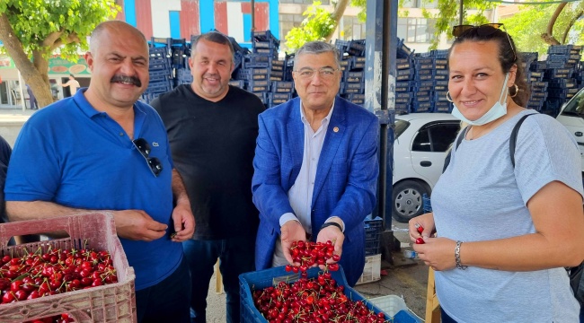 CHP İzmir Milletvekili Kamil Okyay Sındır, Kemalpaşa’da Bağyurdu, Yiğitler ve Ören kiraz alım noktalarında üreticilerle buluştu, çiftçinin düşük alım fiyatları nedeniyle ürününü masrafın yarı fiyatına dahi satamadığını söyledi.