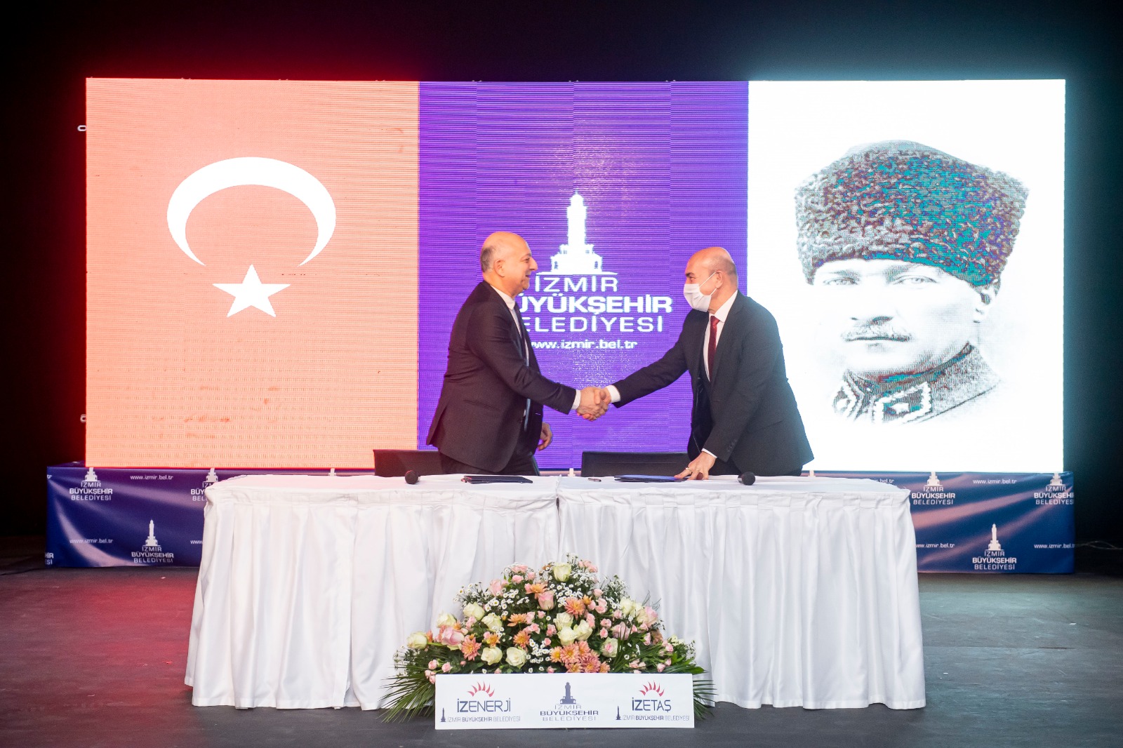 İzmir Büyükşehir Belediyesi ve şirketlerinin enerji ihtiyacını yenilenebilir kaynaklardan sağlamak için kurulan İZENERJİ bünyesindeki İZETAŞ şirketi ile İzmir Büyükşehir Belediyesi arasında 2022 yılı alım sözleşmesi imzalandı. Törende konuşan Başkan Soyer, “Bu çalışmamız ile hem yenilenebilir enerji kullanacağız hem de beş yılda 1 milyar 485 milyon lira tasarruf sağlayacağız. Döviz kurlarındaki artışla bir metro hattı kaybettiğimizi söylemiştik. Bugün bu imza ile bu metroyu geri kazanıyoruz” dedi. CHP Genel Başkan Yardımcısı Ahmet Akın ise öncü şehir İzmir’in yine Türkiye’ye örnek olduğunu söyledi.