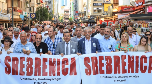 Konak Belediyesi Meclis Üyesi ve Konak Kent Konseyi Başkanı Hamit Mumcuise “Srebrenitsa katliamından bu günlere kalan sadece acıdır. Çocukların öldürüldüğü bir dünyanın sorumluluğunu reddettiğimiz için bugün buradayız. 27 yıllık acının derin yaraları iyileşmesin diye, unutmayalım diye buradayız. İyileşmeyen yaralarımız olsun yüreğimizin en derin yerinde. Unutmayalım. Bu acıları unutmak insani olan her değere ihanettir. Bu acıları unutmak savaşlarda kurşun sıkan parmak olmak demektir. Bu acıları unutmak, tarih karşısında katillerle anılmak demektir. Unutmayacağız” dedi. BM, AB ve NATO’yu soykırıma sessiz kalmakla eleştiren Mumcu, “Bizler faşizme, katliamlara, baskılara karşın ne olursa olsun barışı, kardeşliği, dayanışmayı savunuyor insanlıkla alakası olmayan bütün katliamları tüm katliamları lanetliyoruz” diye konuştu.