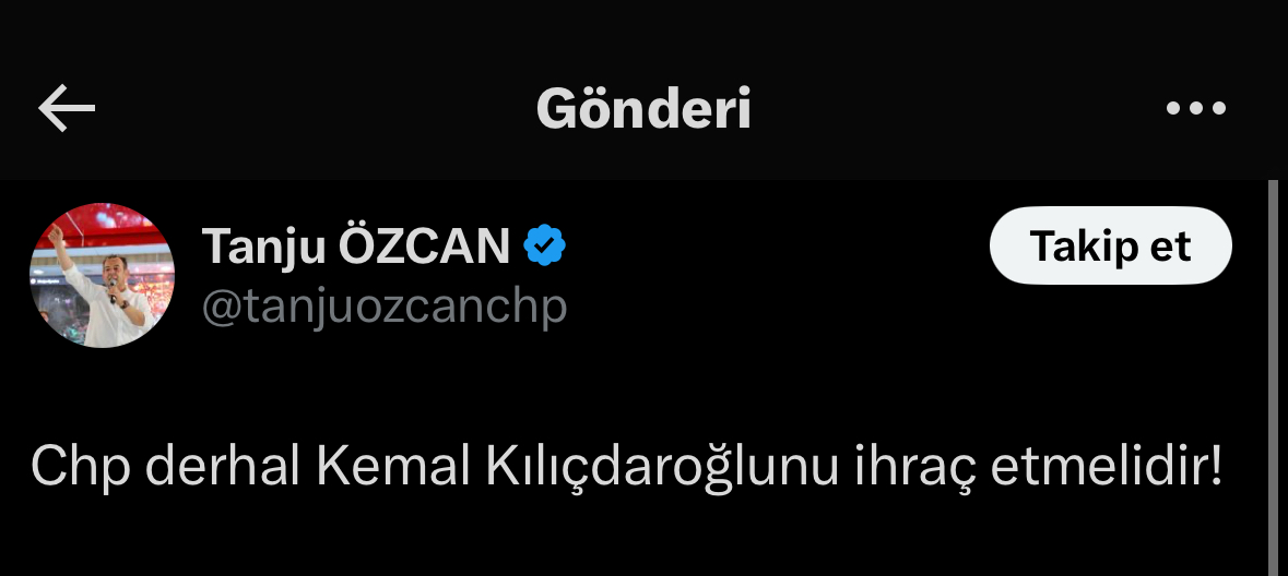 Daha sonra bir paylaşım daha yapan Özcan ise bu sefer CHP'ye Kılıçdaroğlu için seslenip şunu yazdı:
