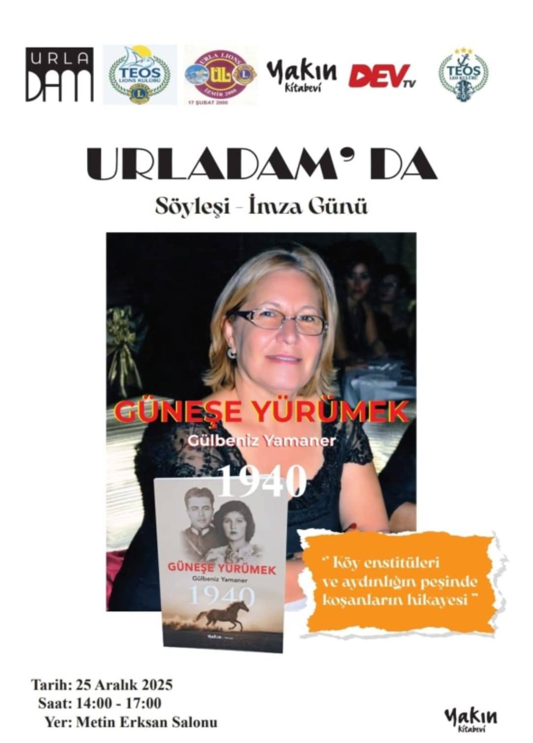 Urla, edebiyat ve kültür dünyasını bir araya getirecek özel bir etkinliğe ev sahipliği yapmaya hazırlanıyor. Yazar Gülbeniz Yamaner, “Güneşe Yürümek 1940” adlı kitabı kapsamında Urladam’da düzenlenecek söyleşi ve imza gününde okurlarıyla buluşacak. Etkinlik, Köy Enstitülerinin kuruluş yıllarını ve aydınlanma yolunda yürüyen kuşakların hikâyesini merkeze alıyor.