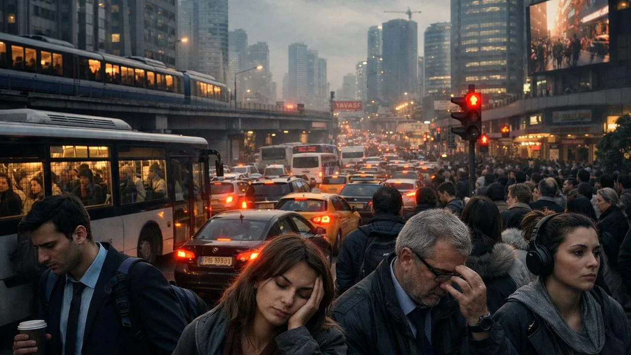 Sabahın karanlığında başlayan koşturma, daha gün aydınlanmadan dolan metrobüsler, hiç bitmeyen trafik… İnsan evinden çıkarken günle değil, mücadeleyle karşılaşıyor. İşe varmak bir yolculuk değil, küçük bir sınav. Herkesin yüzünde aynı ifade: Yetişme telaşıyla donmuş, biraz gergin, biraz umutsuz.