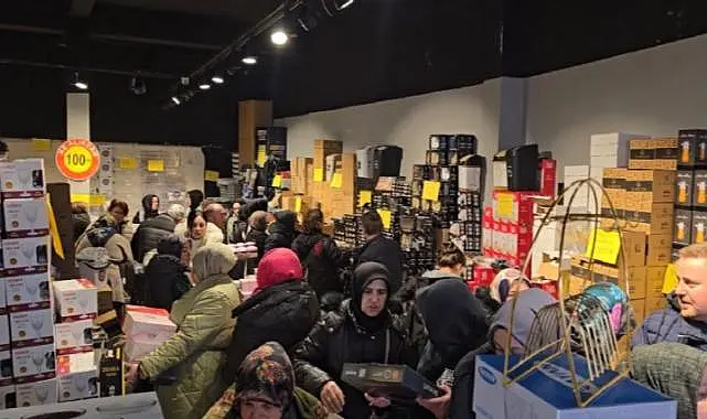 Zonguldak’ın Alaplı ilçesinde bir mağazanın açılışında vatandaşlar 100 liraya satılan ürünlerden alabilmek için adeta birbirleriyle yarıştı.